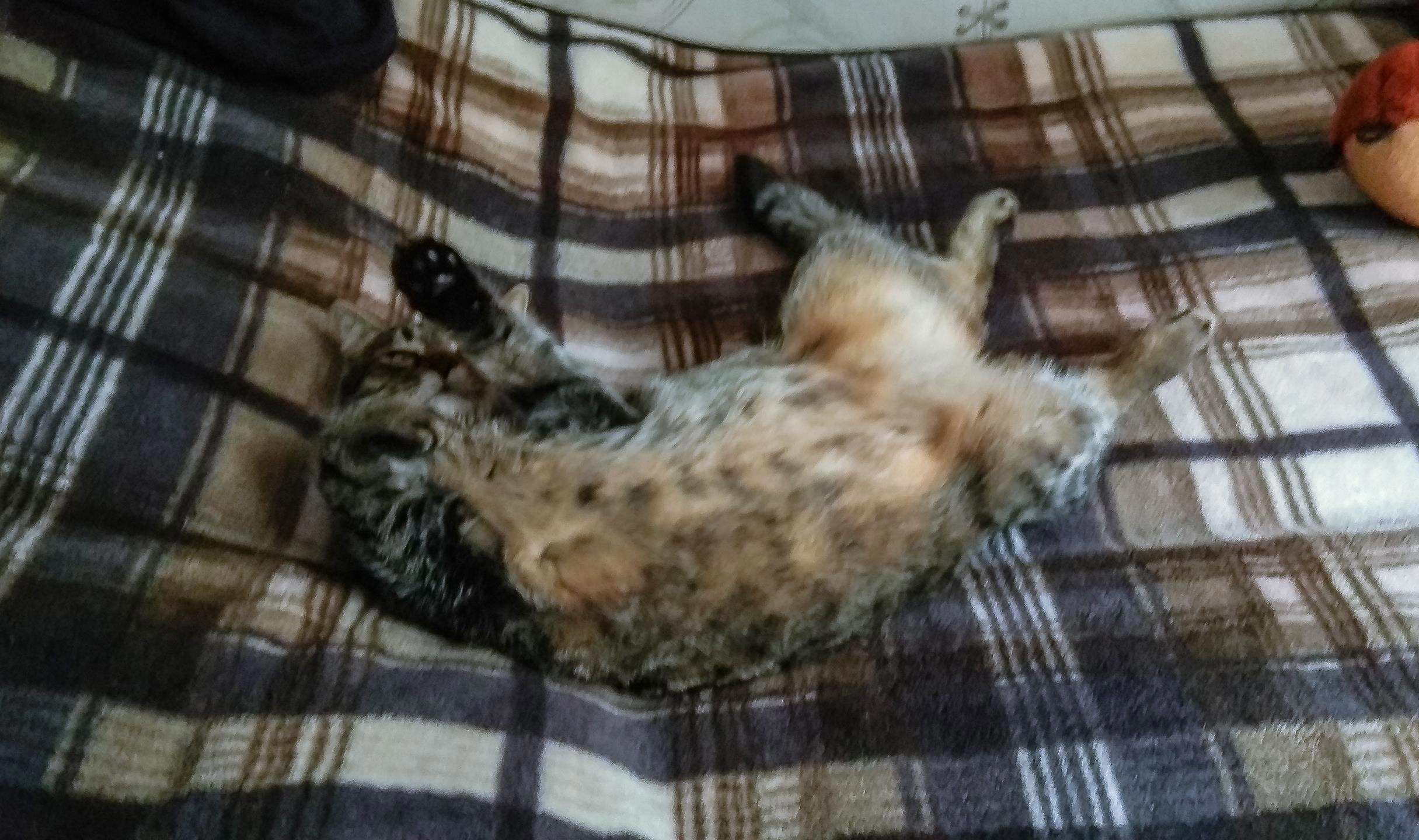 Одна пушистая скотина! Сгрызла мне кабель ... Ну да ладно. Сгрызла, а я починил) Но, эта сволочуга, улеглась торжественно на кровать и ехидно мне улыбается: