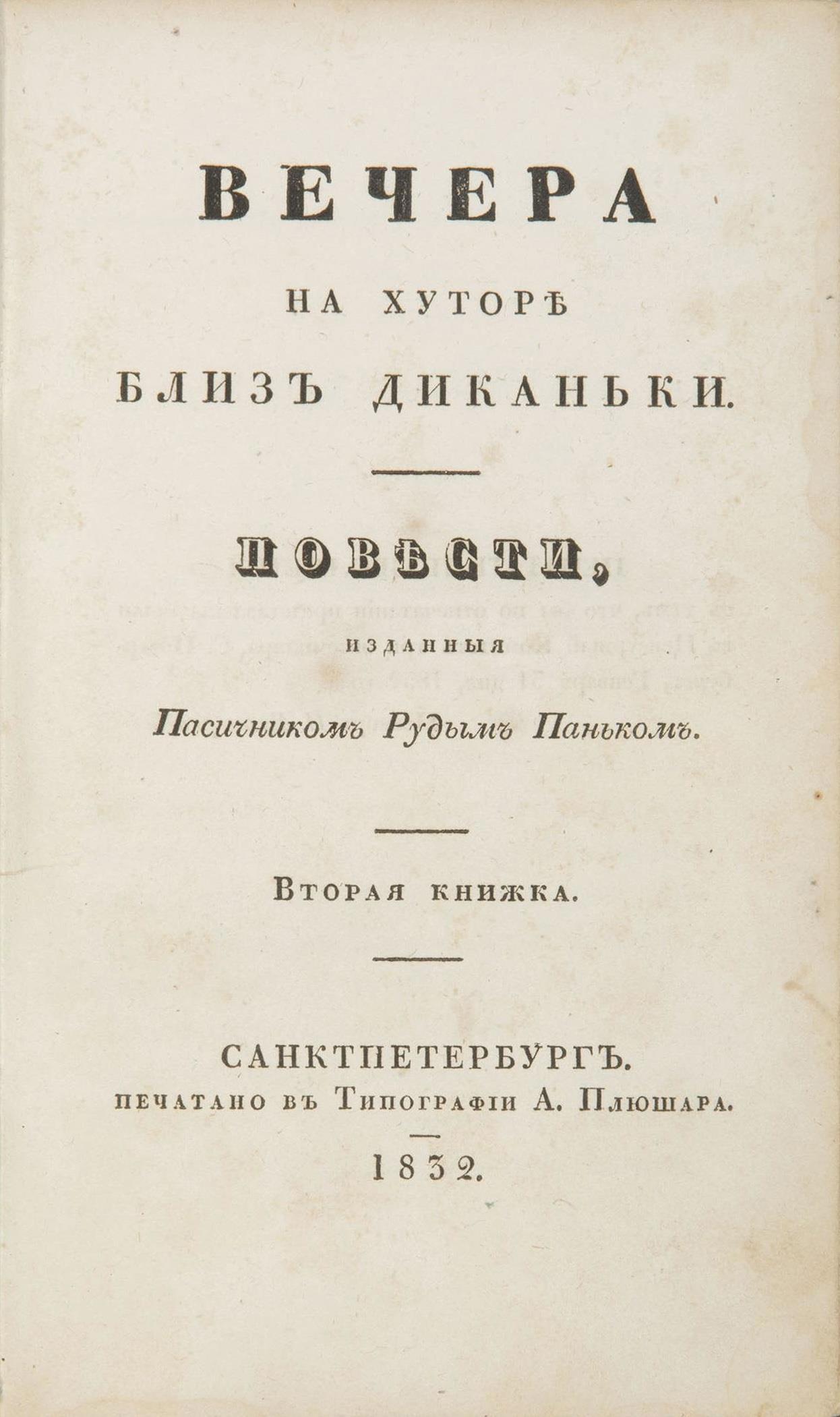 190 лет назад, в августе 1832 года, была издана первая книга Н. В. Гоголя – «Вечера на хуторе близ Диканьки». Написанное по-русски, это собрание небольших повестей заметно сохраняет аромат мелодики украинской речи, широко использует мотивы украинского фольклора.