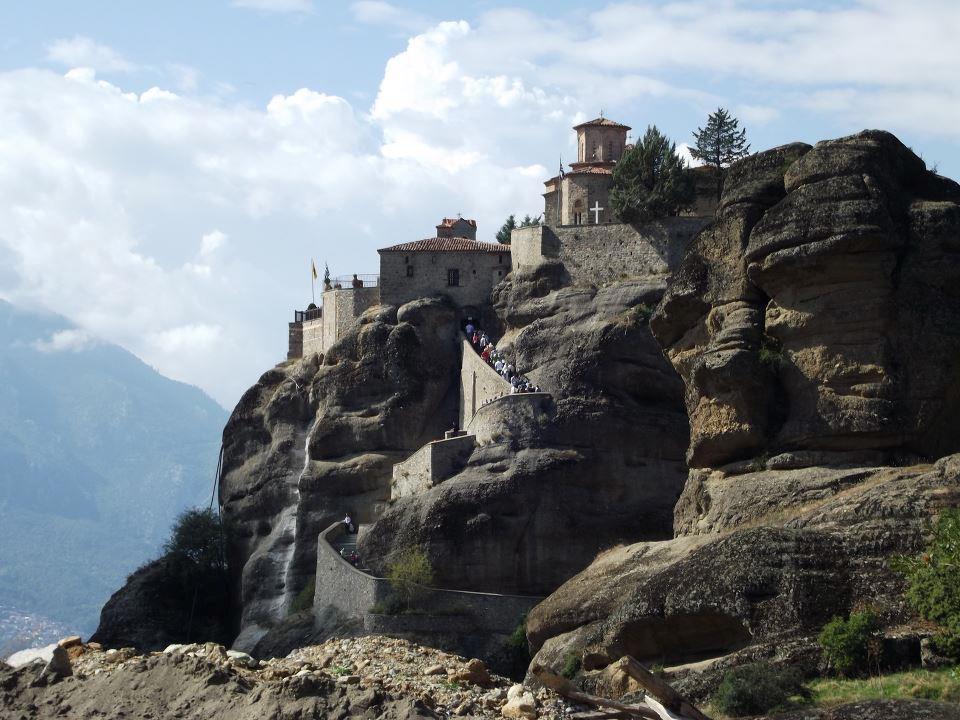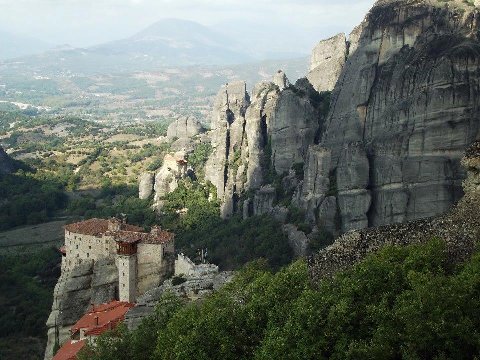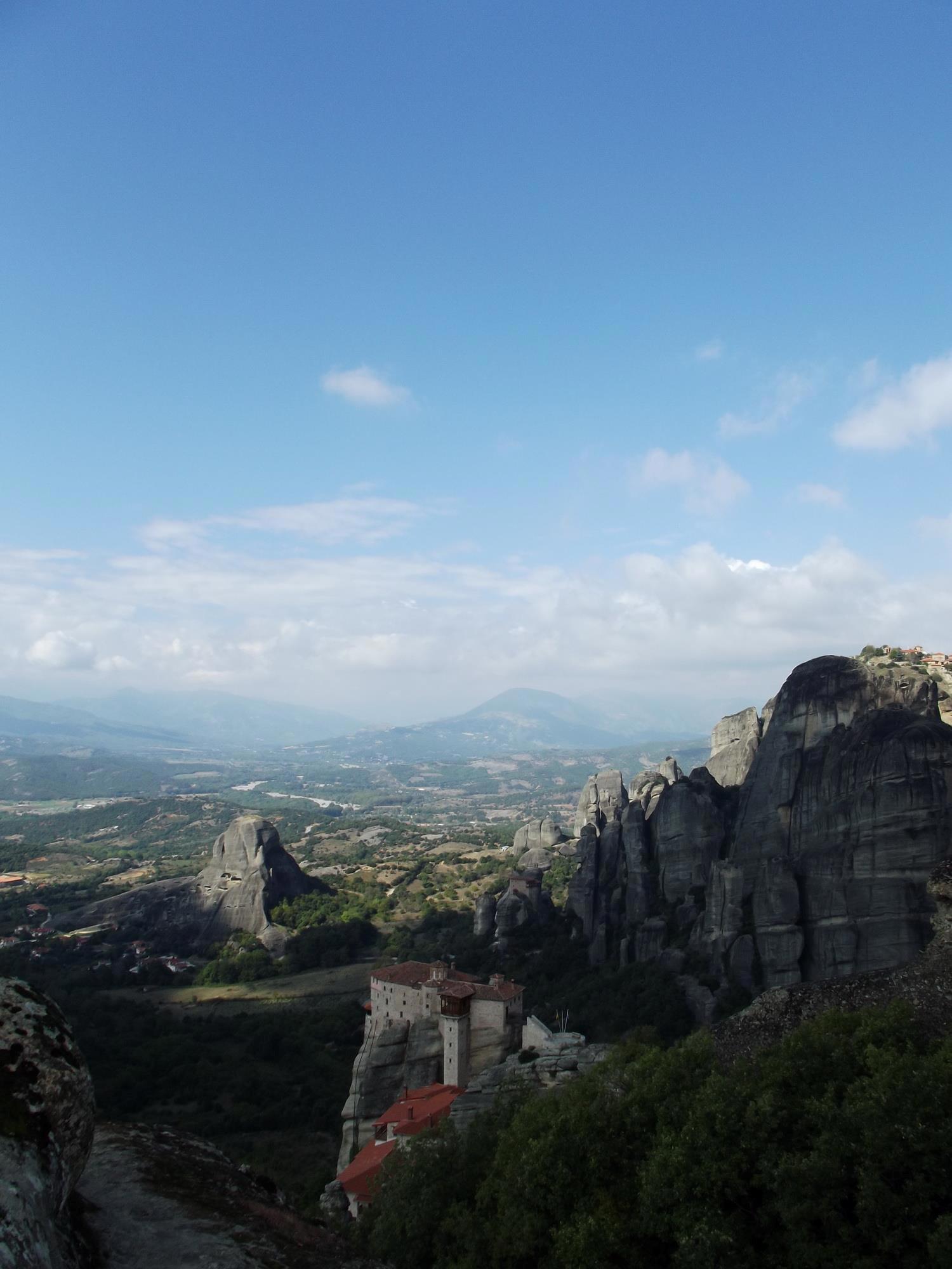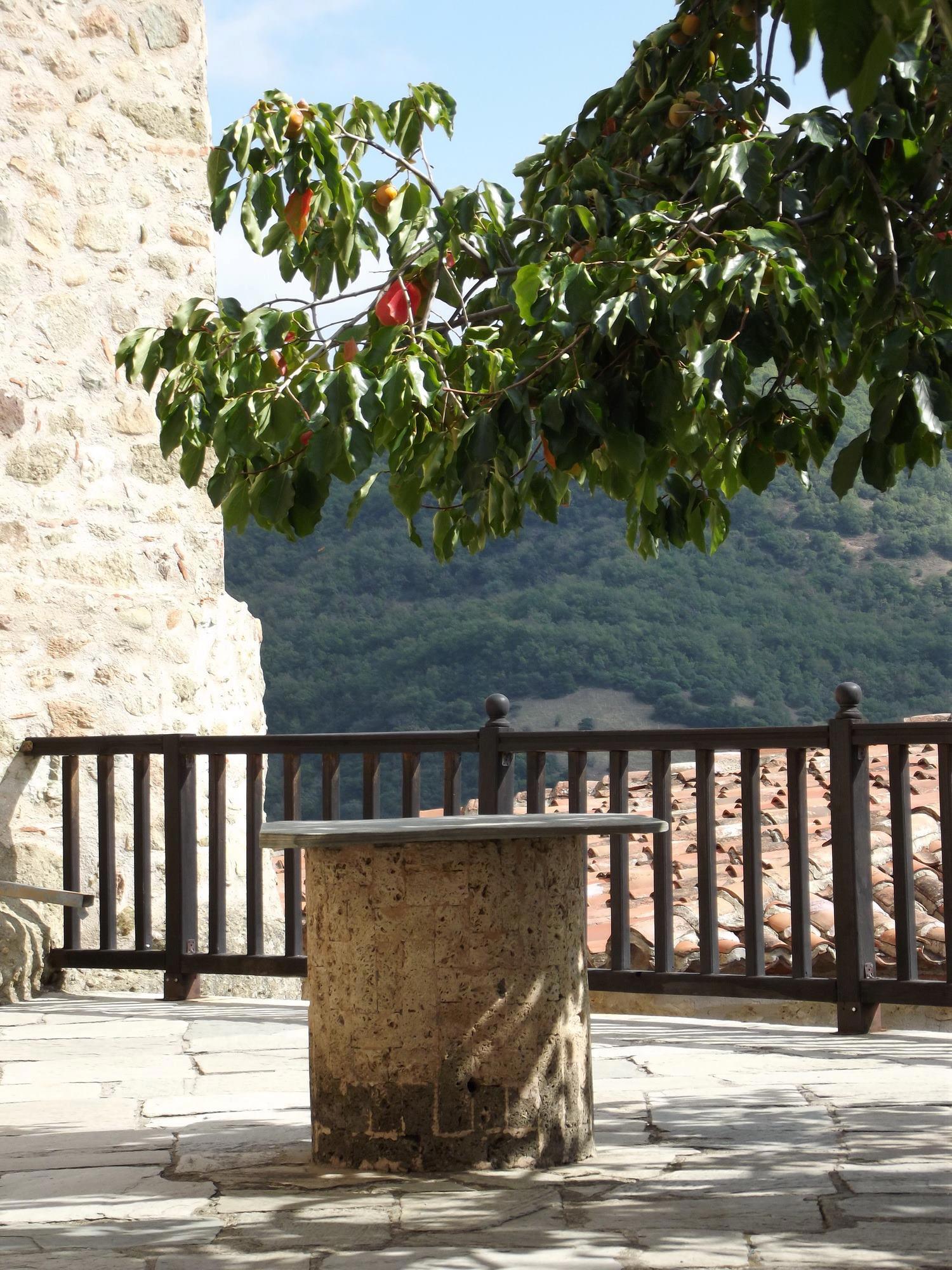 Для пущей антуражности: те самые Метеоры, монастырский дворик и даже гранатовое дерево (фотографии - мои, как и неизгладимое впечатление от сочетания высоты, величия и мощи природы - и простоты и человечности монахов).