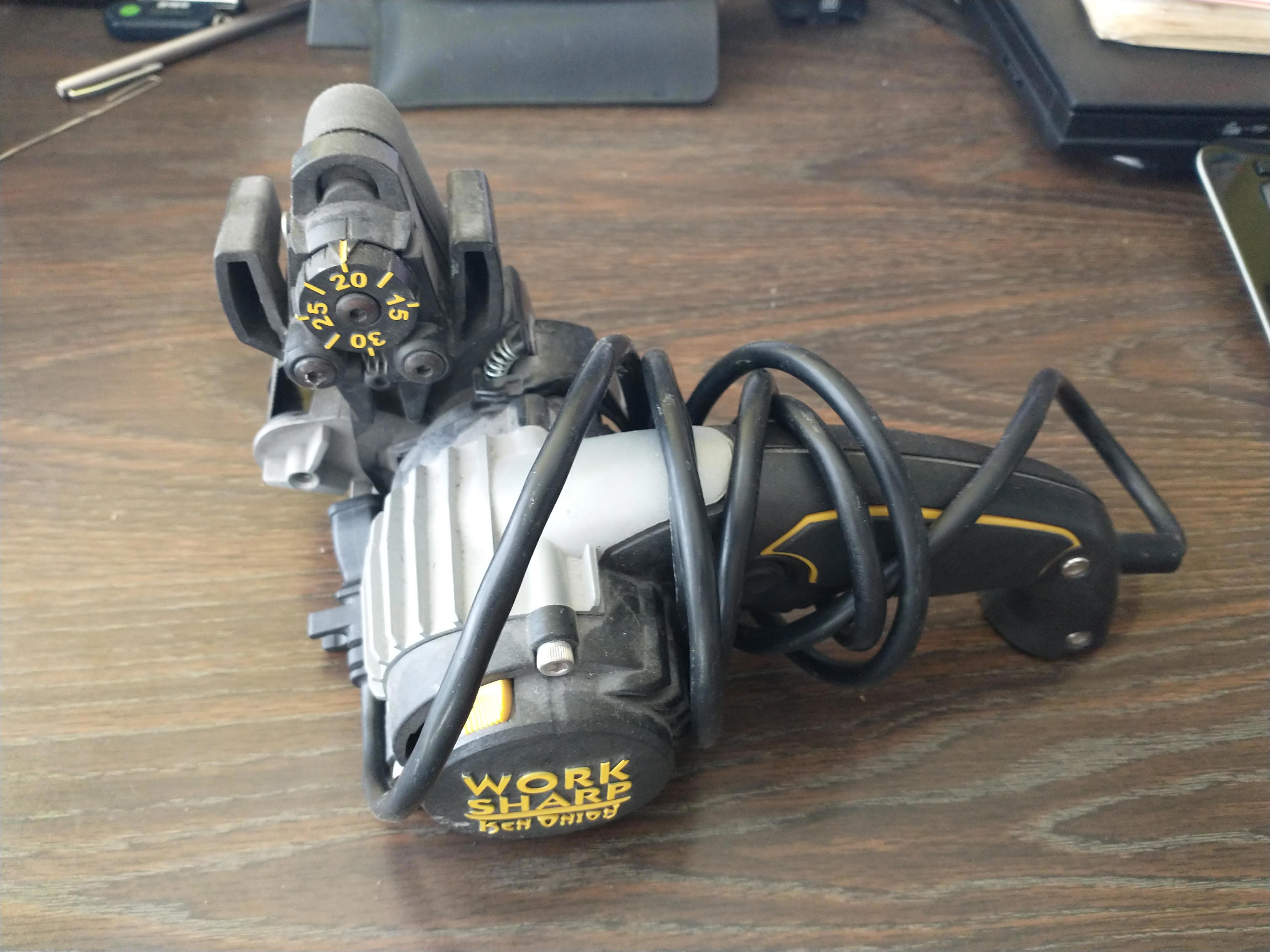Эта машинка позволяет выбирать угол заточки и имеет много разных ленточек, вплоть до алмазных. Кроме того она как бы "закругляет" зону заточки, что повышает её стойкость.