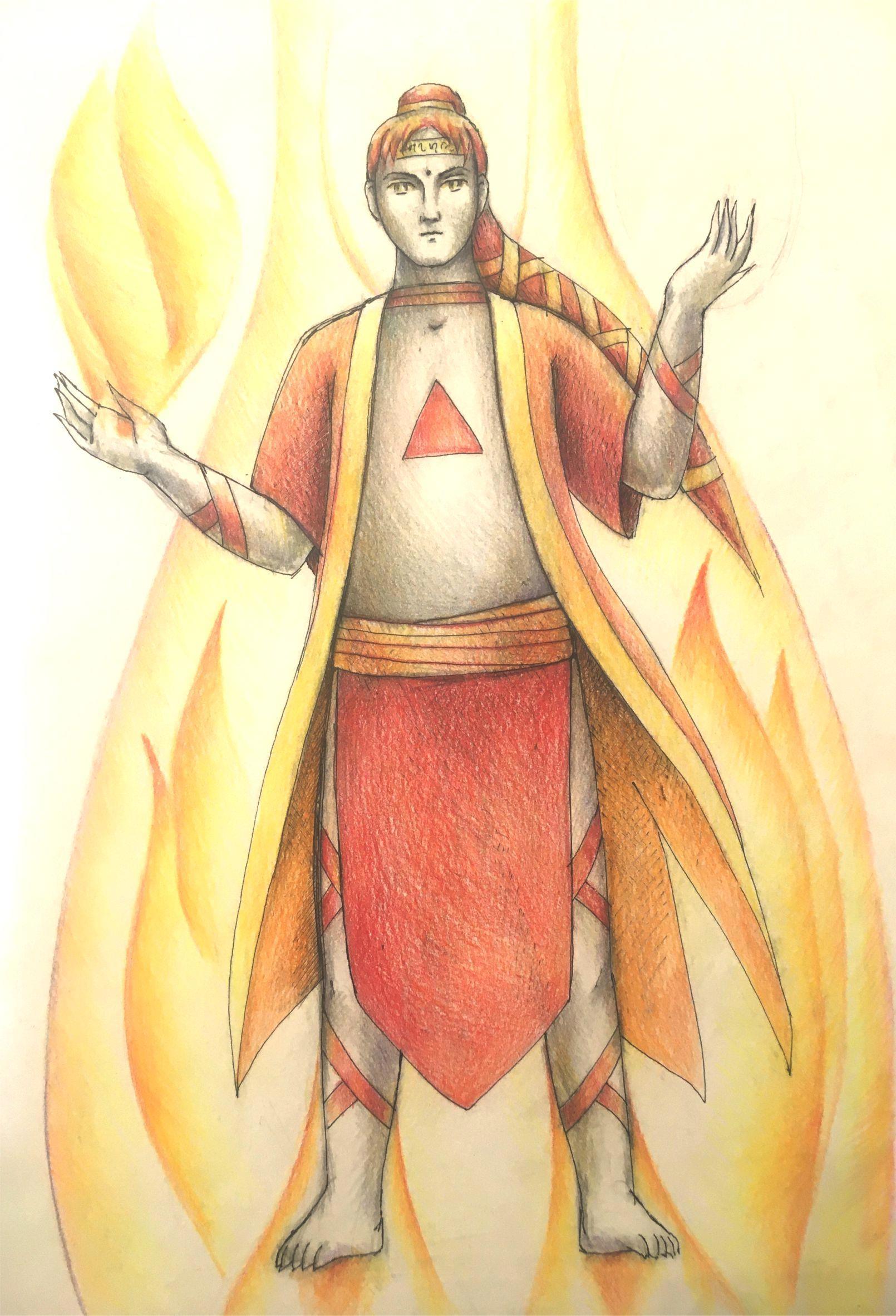 *В этот миг на заалевших небесах будто происходит извержение вулкана и из оранжево-желтого зарева в окружении четырёх огненных змей, является мастер Саргон. Очень гневный, так что всем становится страшно*