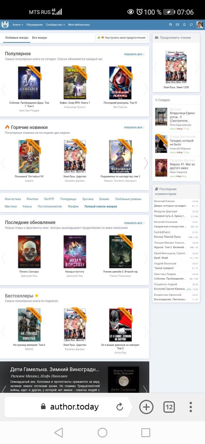 Отчасти так оно и есть. Но! Похоже, что книги определённого рода, собирая вокруг себя аудиторию им под стать. Я всегда старался писать патриотические книги на историческую, военную тематику, при этом неизменно пытался поднять тему веры, обретения Бога на войне. И хотя по-началу, с "Таматархой" действительно много раз сталкивался с неадекватами (что было, то было), то после запуска цикла "Игра не для всех" вокруг меня сформировалась настоящая армия единомышленников, коих я по-праву называю друзьями)) И эти друзья неизменно, при каждом запуске толкают мои книги вверх! Да-да, роман "Злая Русь. Царство" вошёл и в "Горячие новинки" и в "Бестселлеры"