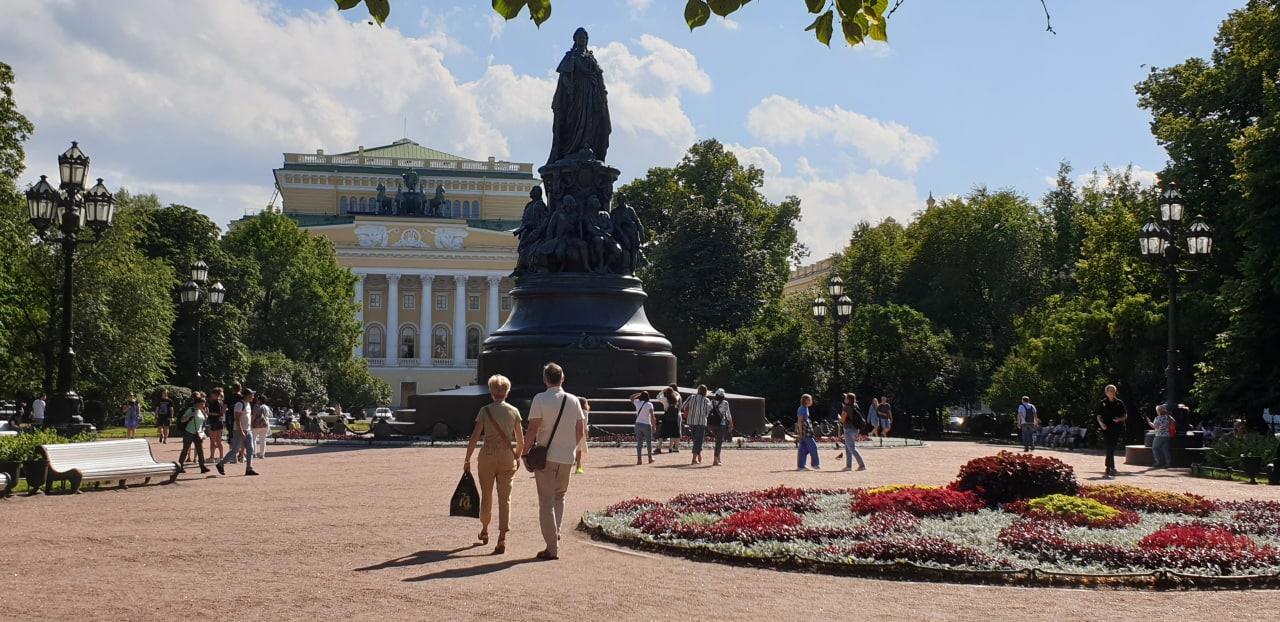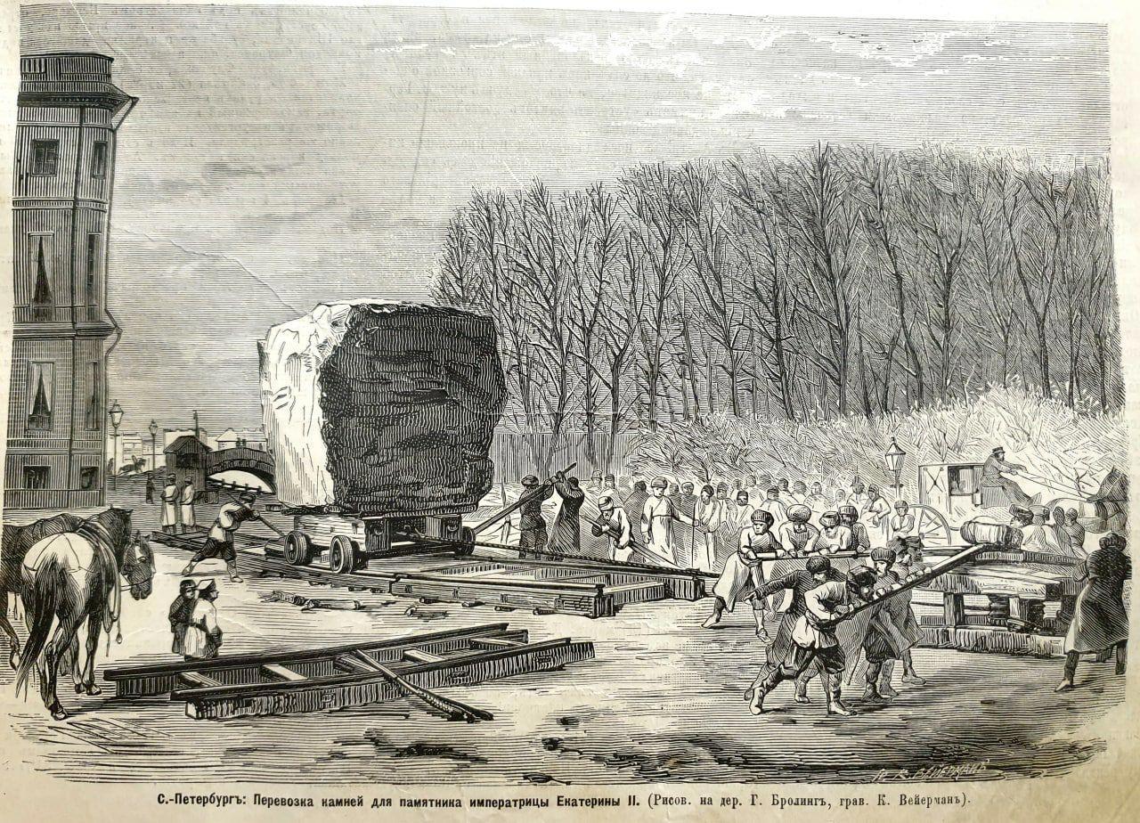 Окруженная зданиями: библиотеки, театра, дворца Наследника русского престола, — обращенная лицом к самой бойкой центральной улице Петербурга, великая монархиня будет отныне находиться в атрибутах царской власти, на глазах у каждого.