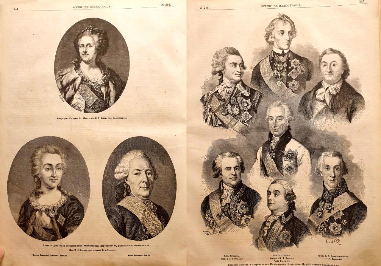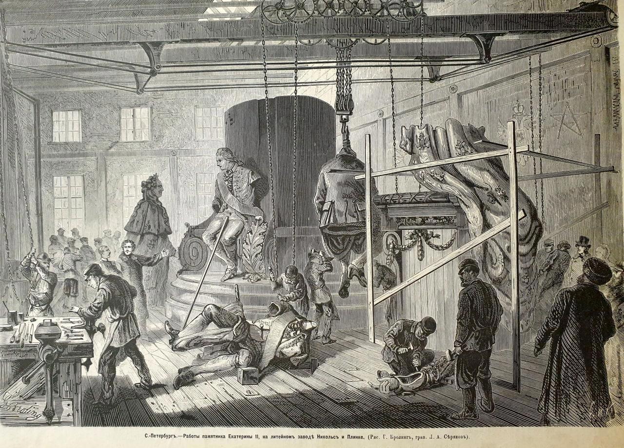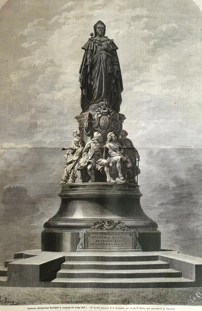 В общей сложности, от цоколя до полукороны, украшающей чело матушки императрицы, памятник полон жизни, он дышит, он не неподвижен и растет какой-то пирамидою мысли и воспоминаний при малейшем труде фантазии смотрящего на него, при мало-мальски порядочом знакомстве с историей России и судьбою лучших имен деятелей Екатерининского века».