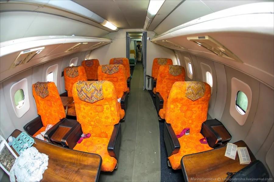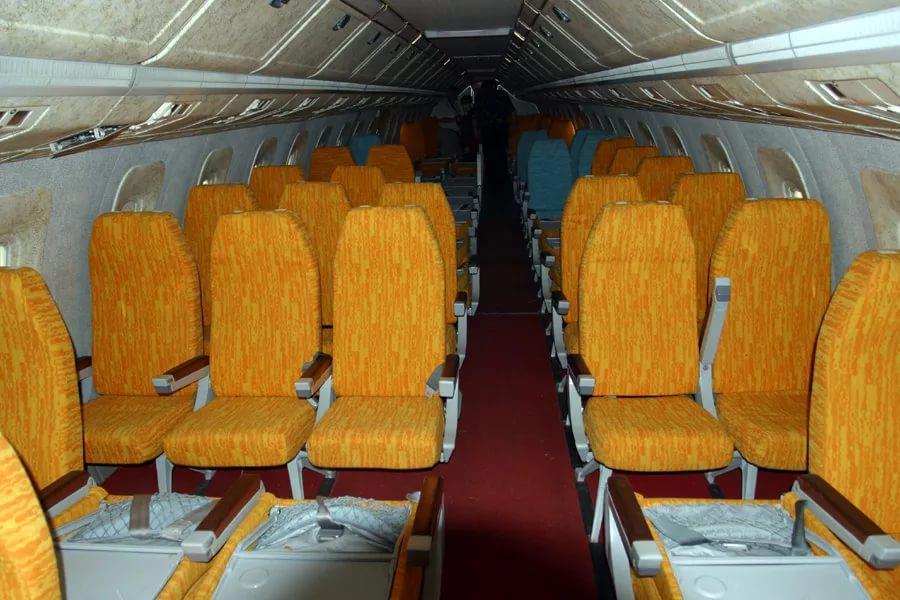 А это салон Ту-144. Узнаете кресла как во всех "Тушках"? В советской эстетике тех лет вообще такого выпендрежа как кожаные кресла не было