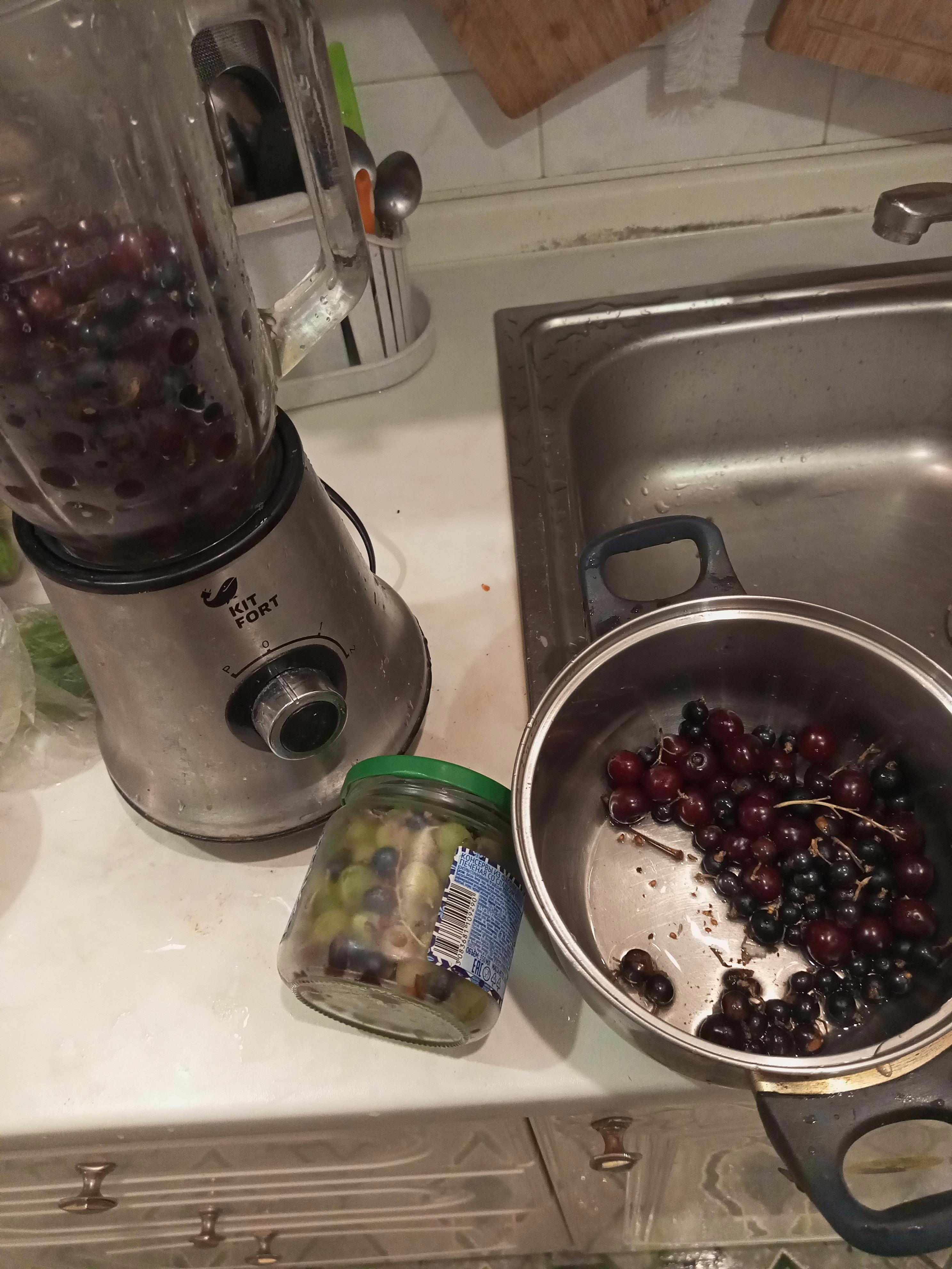 Короче, берем ягоду, промываем, по возможности удаляем косточки и шелуху, но это не существенно. закидываем в блендер, добавляем чуток воды и врубаем.
