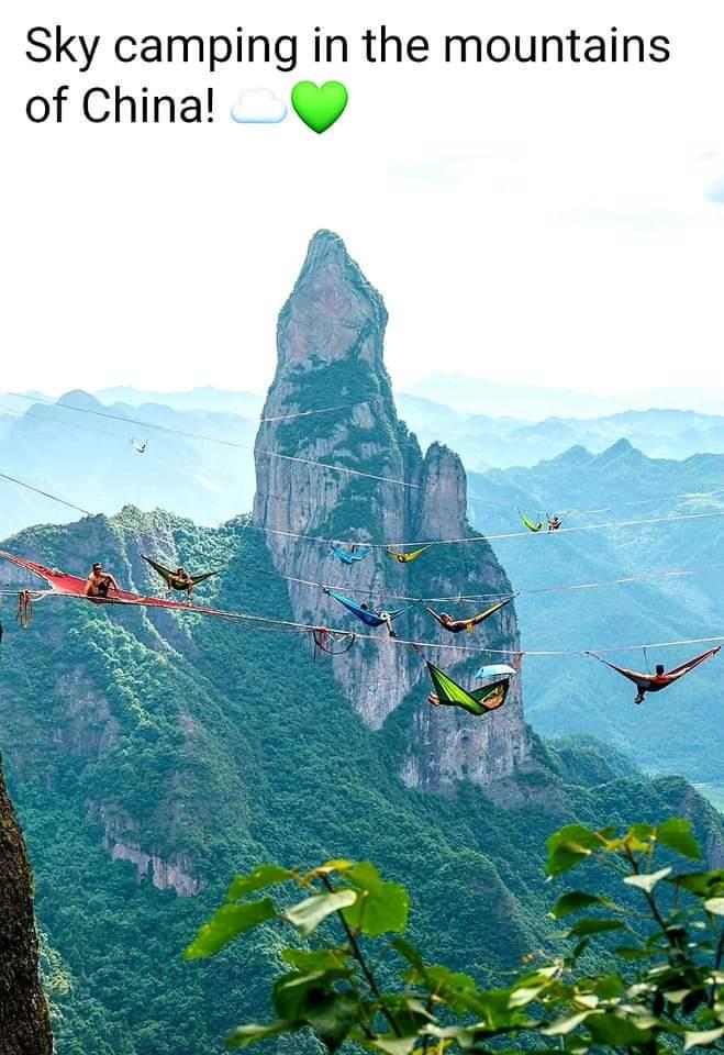 Прыжки со скал в Китае. (Шутка). Это такой кемпинг у них там.