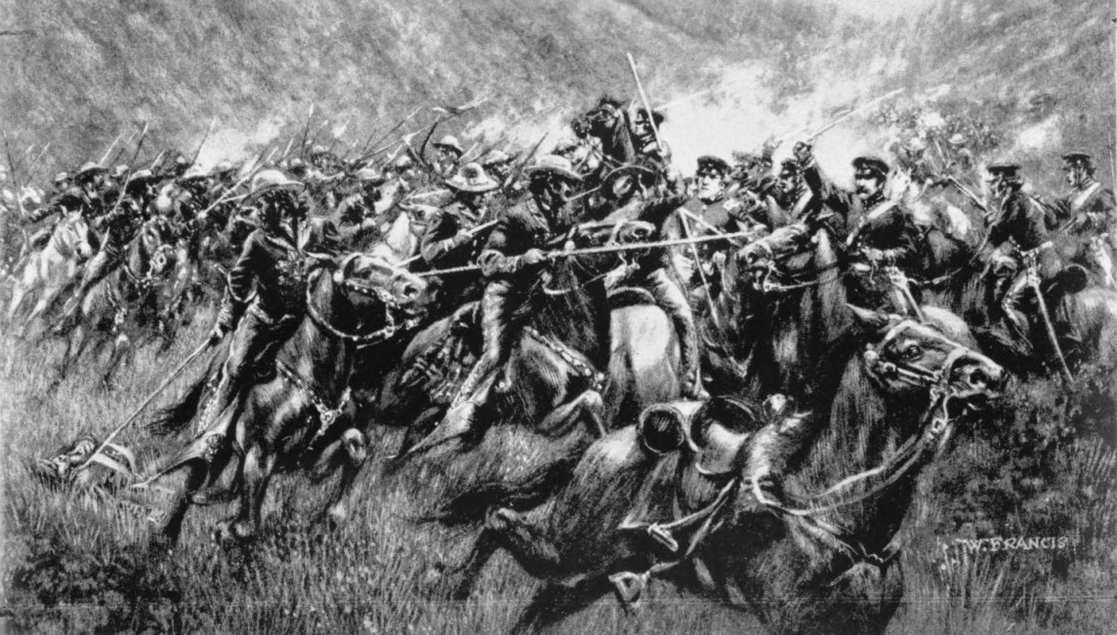 (атака мексиканцев. Картина объясняет превосходство мексиканцев в мелких стычках: вооружение - пика против сабель, одежда - сомбреро, джинсы - идеальная для той среды против довольно неуклюжей формы. Все мелкие стычки как правило завершались победами мексиканцев - крупные баталии выигрывали американцы)