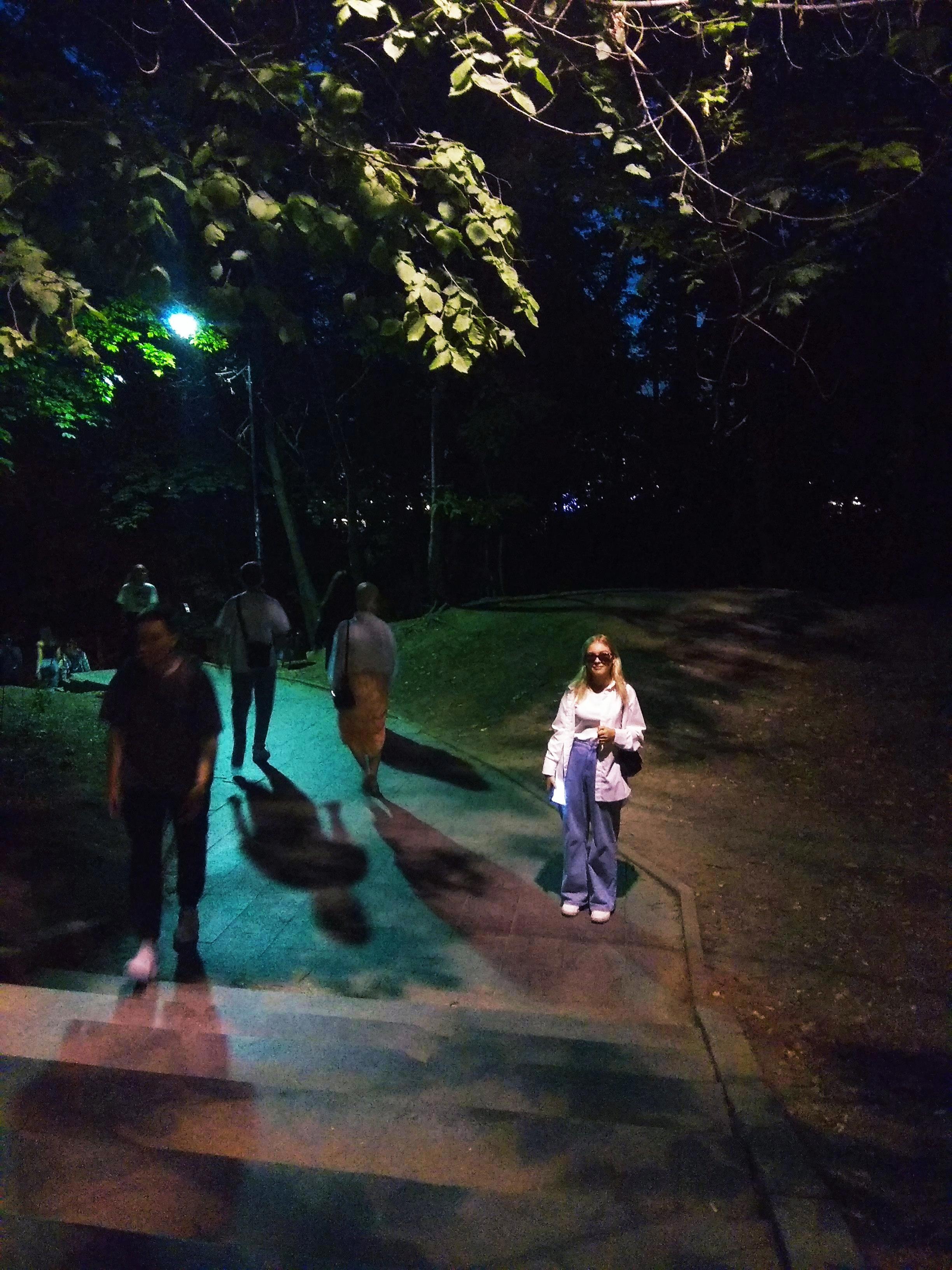 После мы погуляли по заказнику Воробьёвы горы, посетили смотровые площадки, спустились к набережной.