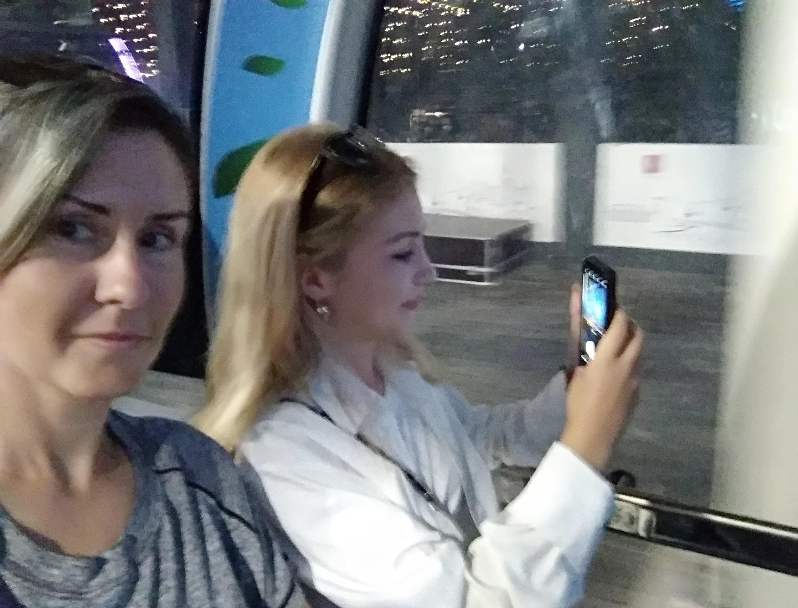 Покатались, у дочери ощущения те же. Никакого восторга, чтобы прямо ах! Зато дети, которые ехали с нами, (а в кабинке едут человек по шесть-восемь), громко орали при каждом качке.