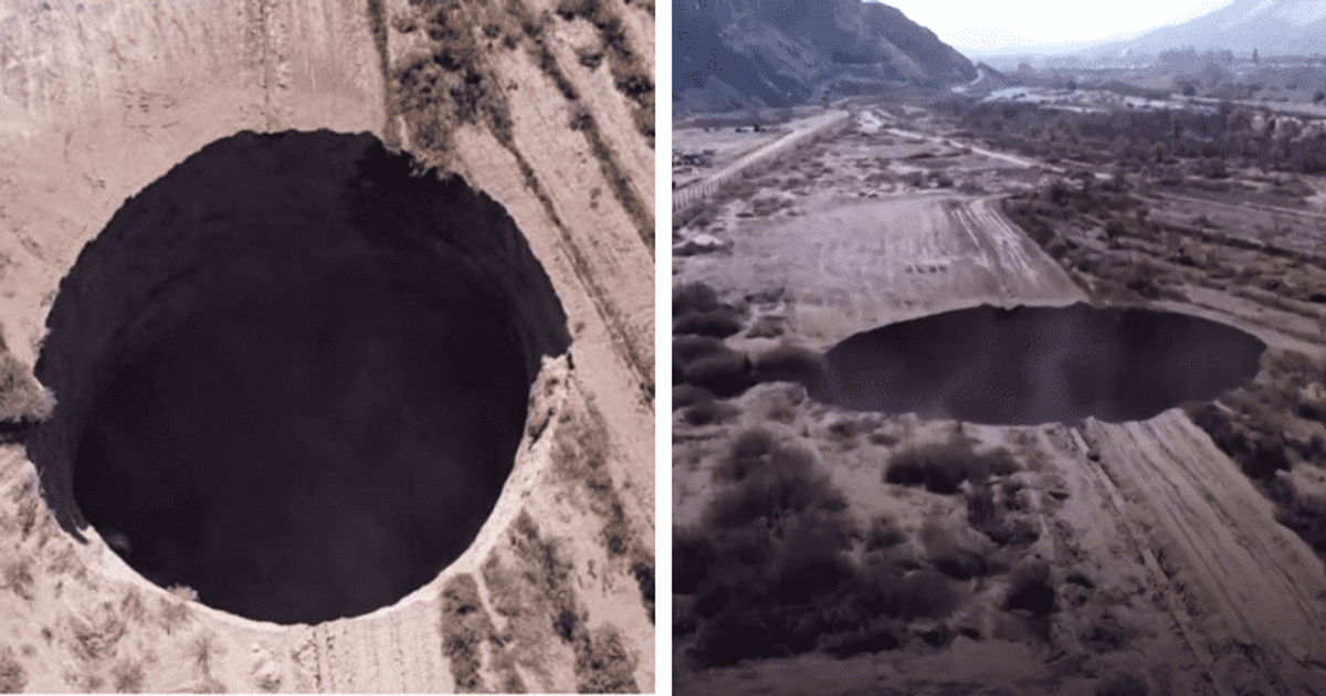 В Чилийской пустыне Зияет огромная Загадочная воронка. Скорее даже не воронка о цилиндрический провал грунта.Это глубже, чем высота Спейс Нидл в Сиэтле.