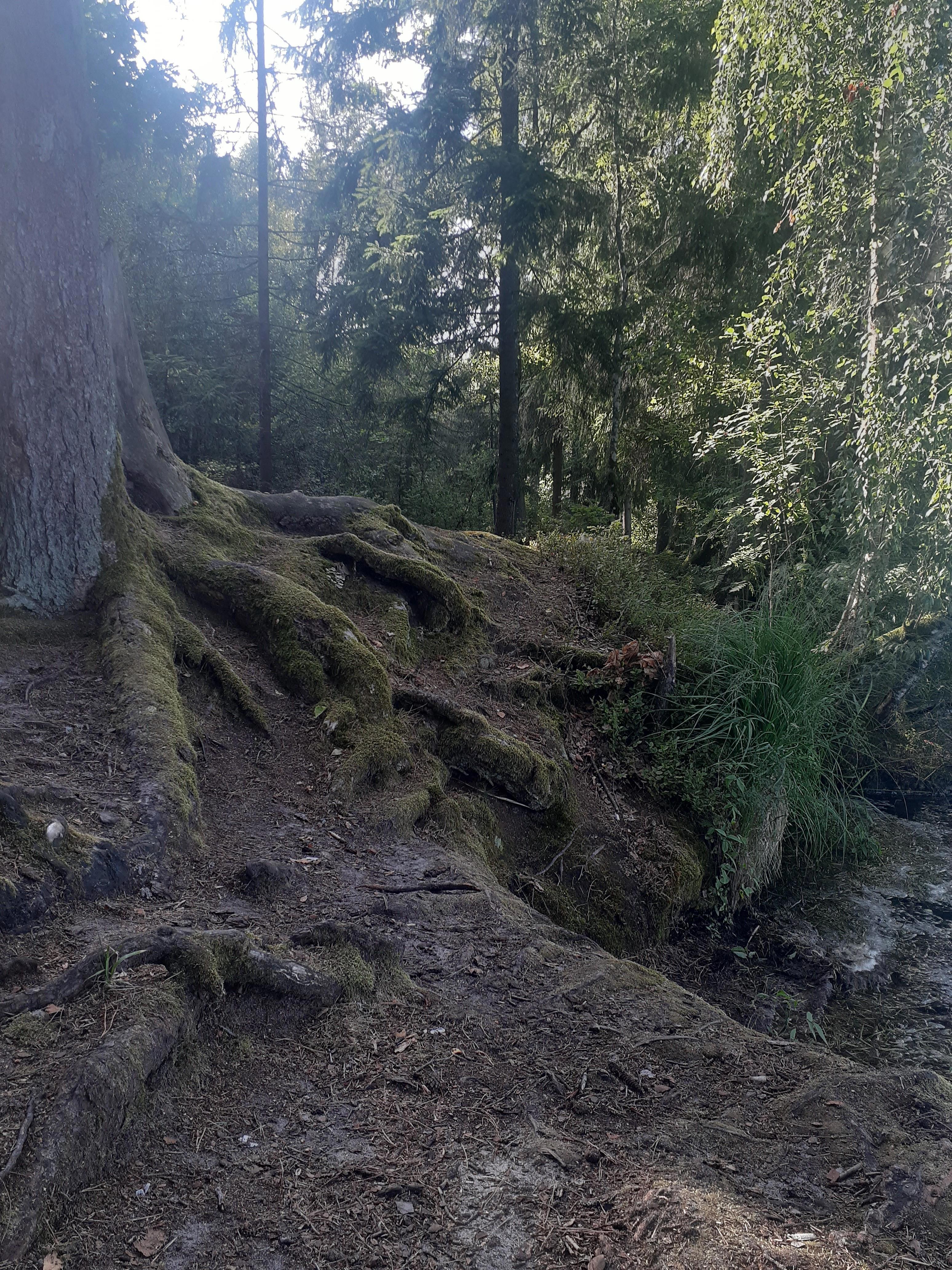 Ну и сказочный берег, с выступающими корнями поросшими мягким мхом. В этих корнях оказалось очень удобным сидеть и наблюдать за водой и ныряющими в ней чомгами.
