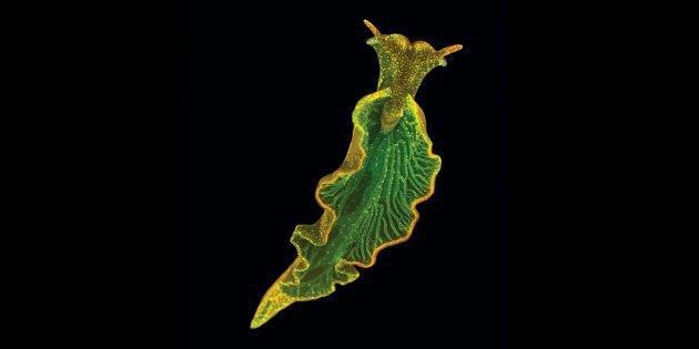 Этот похожий на лист морской слизень может получать энергию при помощи фотосинтеза. Для этого он использует хлоропласты поглощённых им морских водорослей. Встречаются такие существа вдоль атлантического побережья Северной Америки.