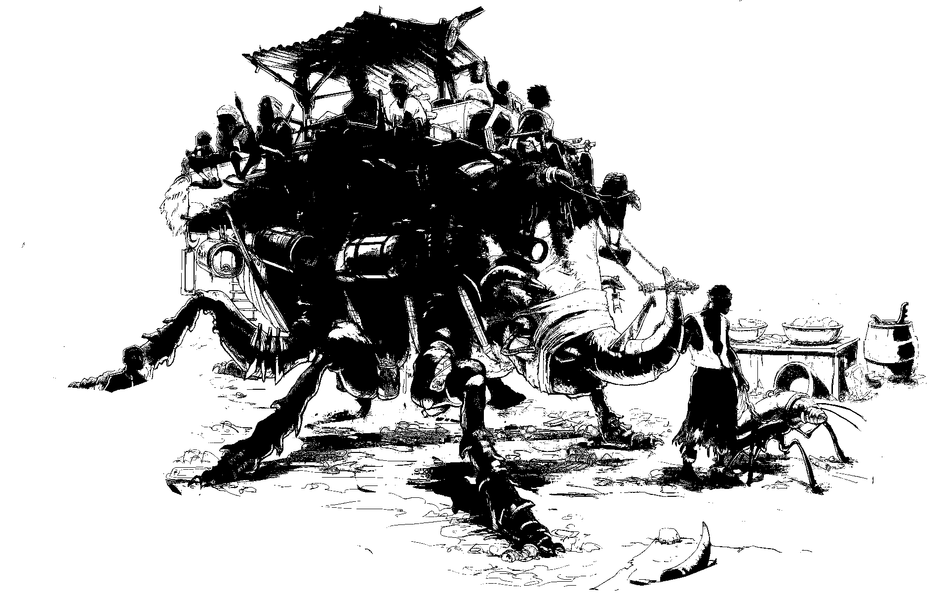 Огромные жуки в панике старались вырвать сдерживающие цепи прибитые к земле. Они учуяли тварь и страх перед ней не убавили даже внушительные размеры.