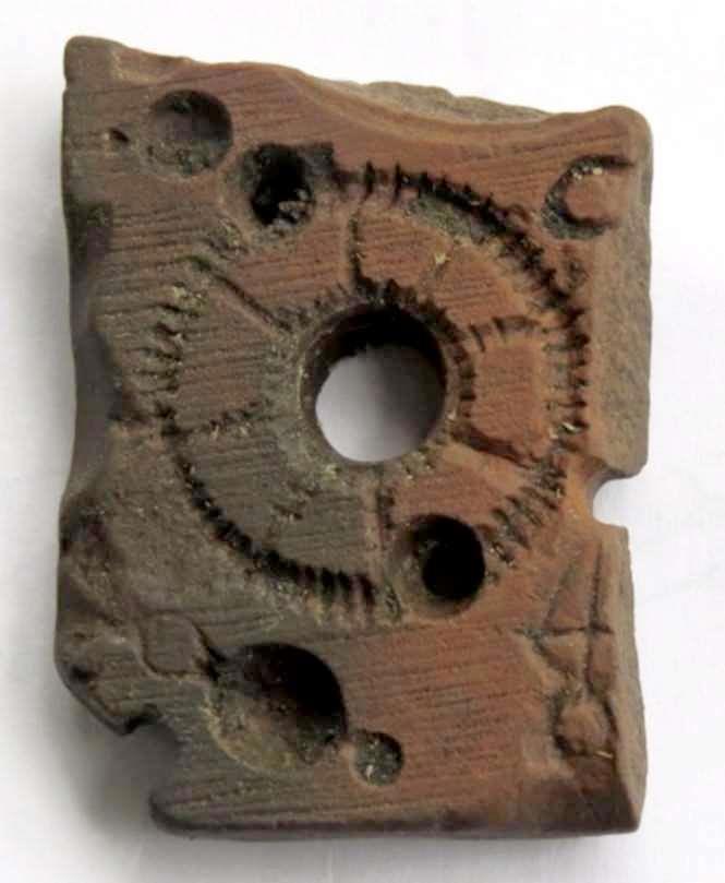 Ну, сами видите — нереально странная штуковина. Что это за отпечаток какой-то шестерёнки, и зачем в этом камне насверлили кучу странных не сквозных отверстий без всякой видимой системы? Вот оно — сообщение (одно из...):http://www.historie.ru/news/184-na-raskopkah-v-vologde-nashli-tainstvennyy-artefakt.html