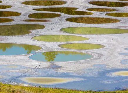 Летом в этих местах стоит сильная жара, из озера испаряется много воды, соли кристаллизуются, образуя небольшие островки, при заполнении которых водой и появляются разноцветные пятна.