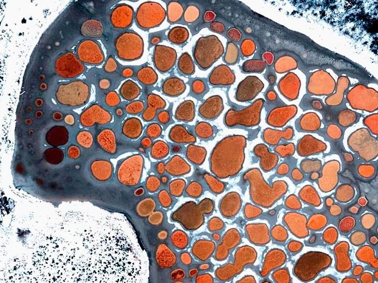 Удивительно оно тем, что вся его поверхность покрыта множеством отделенных друг от друга овальных пятен тягучей жидкости самого разного цвета - желтого, голубого, коричневого, зеленого, серого.