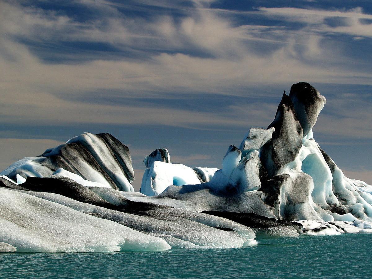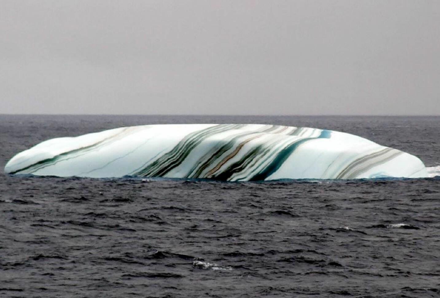 Причиной темных полос на айсбергах часто является содержащийся в них вулканический пепел.