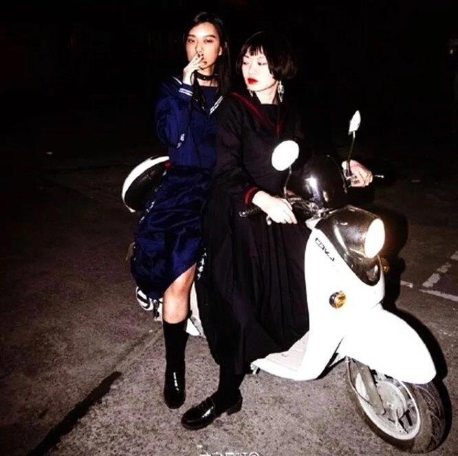 Разумеется, сукебан не могли не разработать свою униформу: длинная юбка, позволяющая скрытно таскать биты и нунчаки, обрезанные рубашки, открывающие живот, куча всяких фенечек и прочей подростковой лабуды.