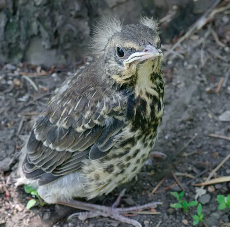 Автор: Наталия ЭТОВо дворе дома нашли птенца. СимпатиШного, с пушистой панковской челкой. Пришлось спасать его от нашей собаки и сажать в корзинку. Напоили с ватной палочки, потом высадили около деревьев, но так, чтобы наша немка не смогла найти и слямзить пушистика.