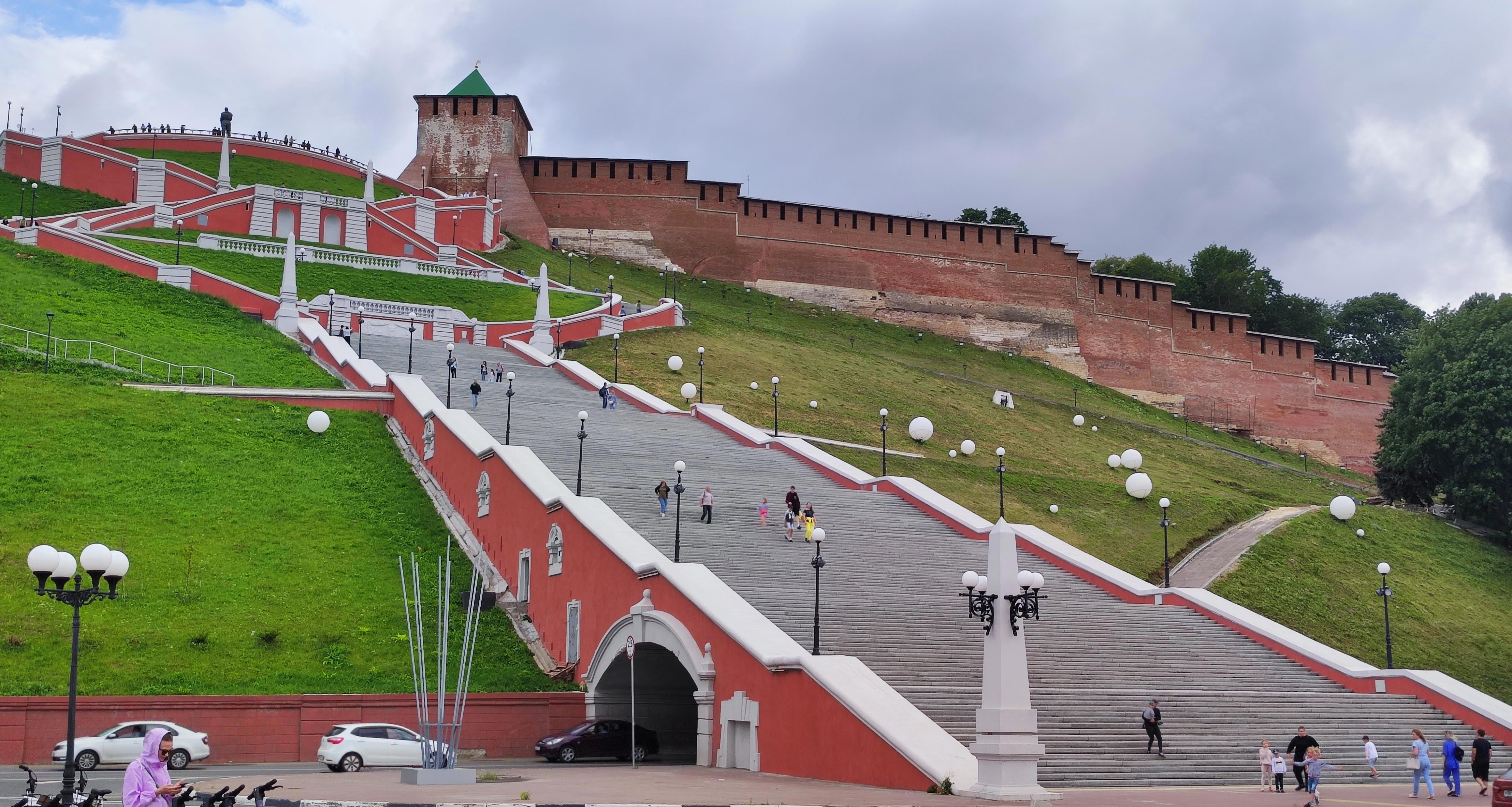 Местный кремль тоже поражает своей неприступностью. Расположенный на пригорке он был надежной крепостью от соседей татар и нагайцев, которые любили воровать местных дев и пацанов для продажи в рабство. Там так много лестниц, да и как вообще в городе, что я начал называть нижегородцев - лестничными людьми. Наверное, если бы тут побывал Толкиен, он бы восхитился и сказал, что вот где живут хоббиты с накаченными ногами!