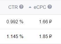 Знаю, что это интереснее всего. Ниже указана стоимость клика у двух объявлений-лидеров. Да, есть ещё куда стремиться, но для самоучки, начавшего немногим больше недели назад, вроде как неплохо.
