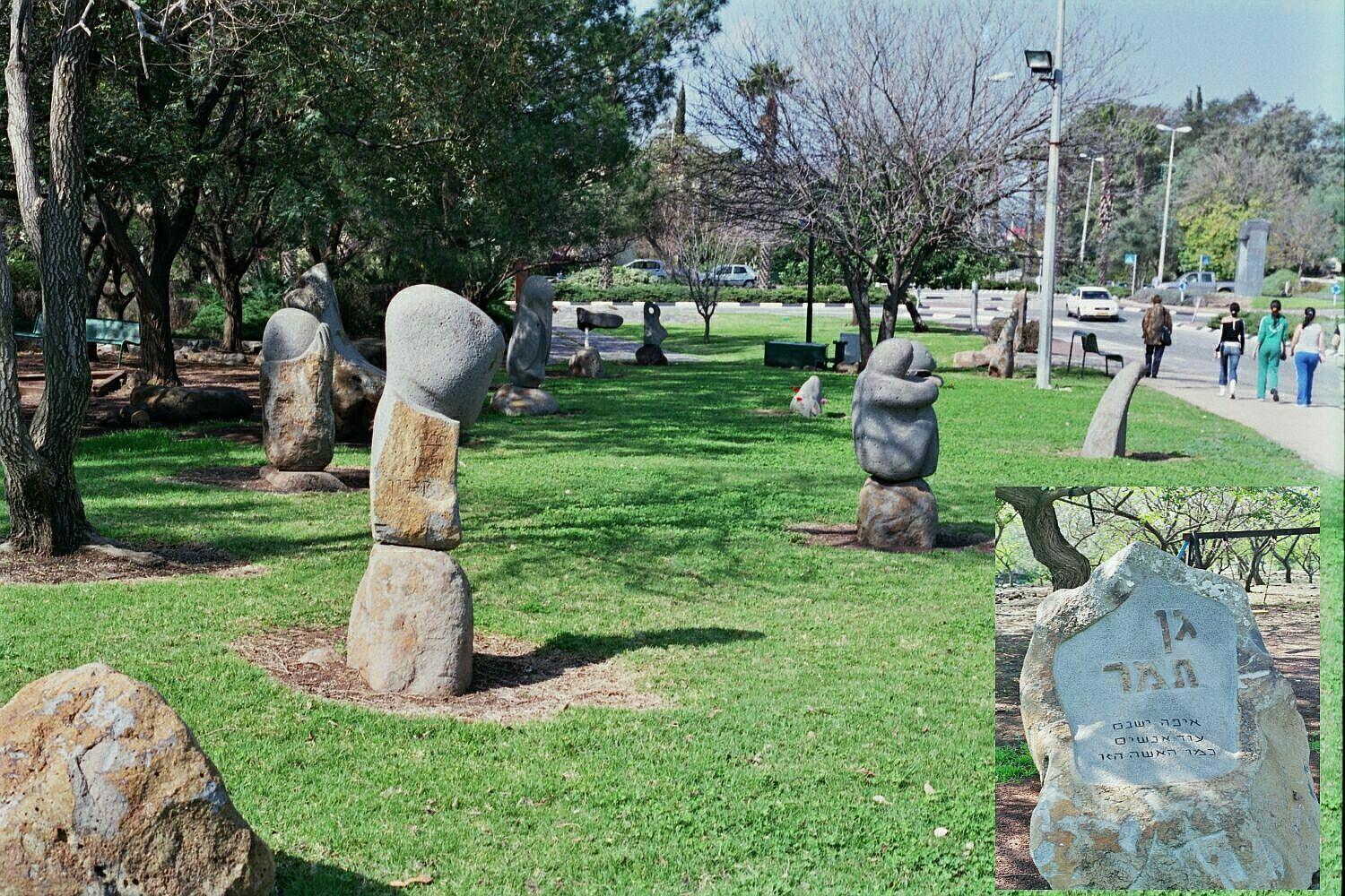 Стилизованные фигуры из камня создал местный скульптор в память о покойной жене – Тамар. Надпись на центральной скульптуре поясняет, что тут вместе с Тамар спят люди, созданные его резцом. И очень символично, что рядом – отличная детская площадка: ребячьи голоса смягчают скорбь.