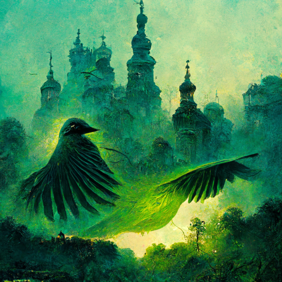Автор: Яна ВетроваПопросила MidJourney что-нибудь на тему "птичья песня" в зелёном цвете. Это прямо монументально.