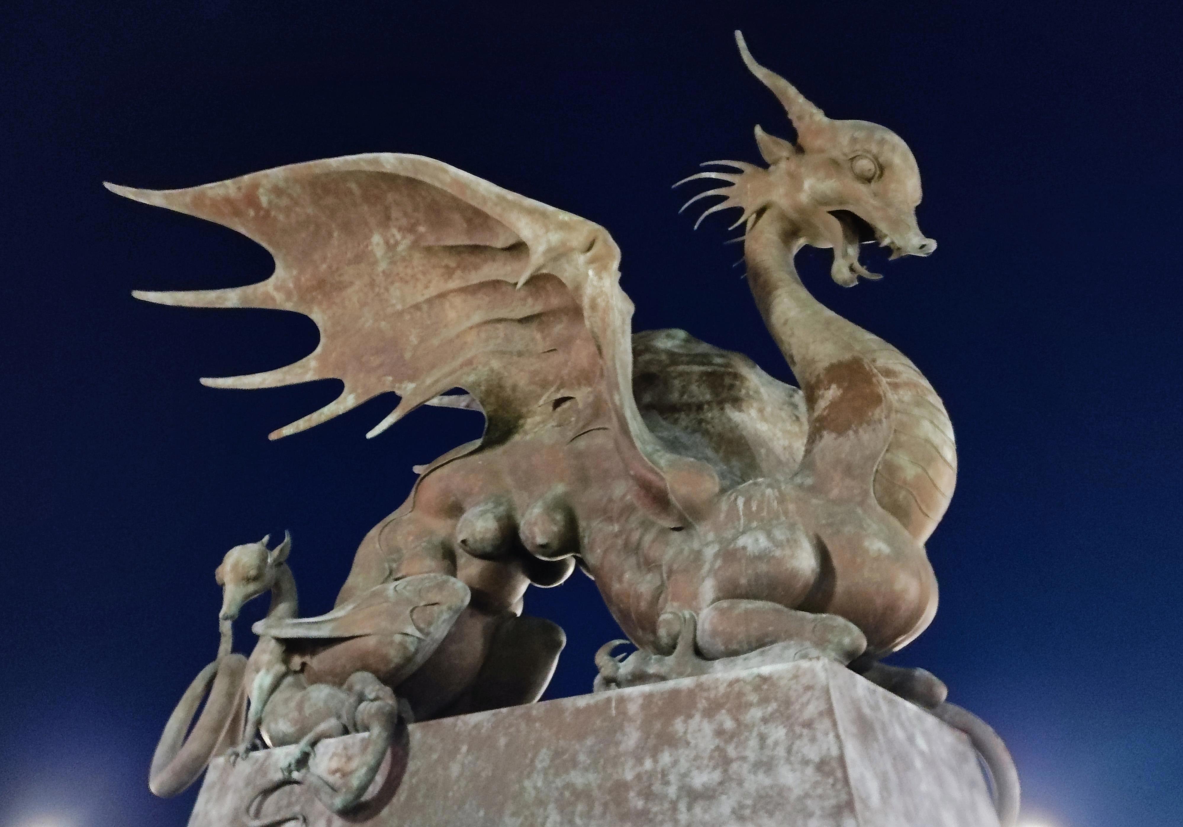 Вторая зона повышенного внимания со стороны инстасамок, это современный центр семьи «Казан», который еще является и ЗАГСом. На крыше расположена смотровая площадка, где можно сделать красивые кадры на фоне исторического центра. А перед входом стоят скульптуры водных драконов, вернее больше василисков. Это зилант - один из символов Казани. По легенде, зилант находится на дне озера Кабан, где охраняет сокровища красавицы Сююмбике.