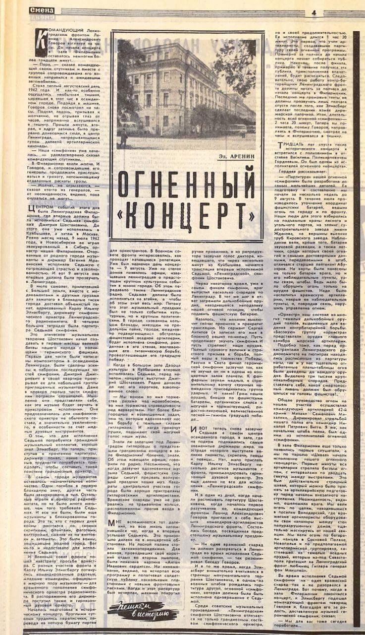 В газете «Смена» за 1972 год была опубликована статья «Огненный концерт»: