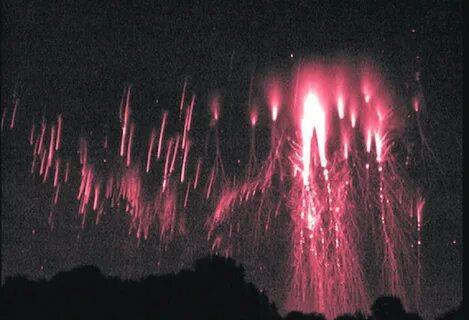 Спрайты появляются в виде светящихся красно-оранжевых вспышек.