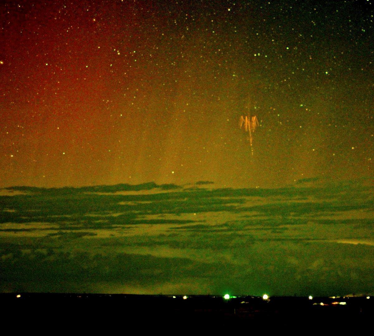14 августа 2004 года инструментом SPICAM на борту орбитальной станции Mars Express в районе Киммерийской земли было зафиксировано такое явление. Общий размер излучающей области составлял около 30 км в поперечнике, и примерно 8 км в высоту.