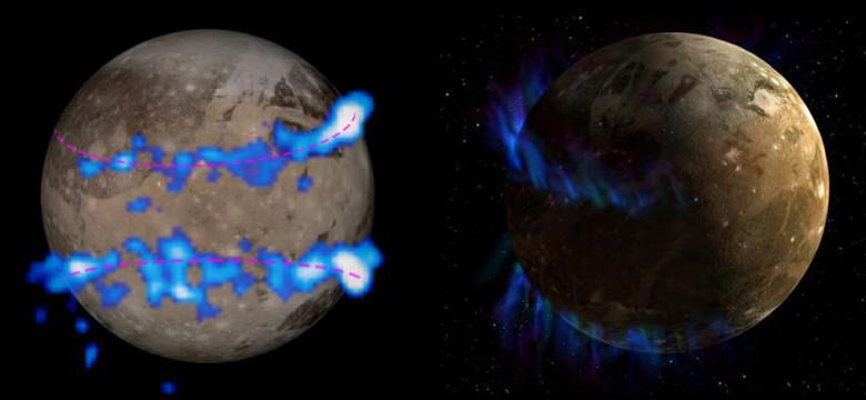 Ганимед — крупнейший спутник в Солнечной системе и единственный, имеющий собственную магнитосферу. Она очень мала и погружена в магнитосферу Юпитера. Однако наличие у Ганимеда ещё и слабой кислородной атмосферы обуславливают и наличие ультрафиолетовых полярных сияний.