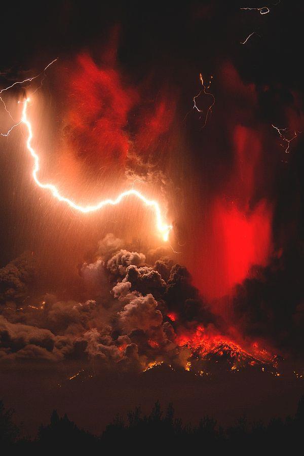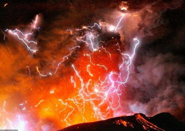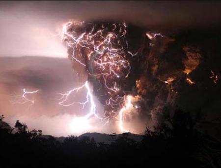 Это очень красивые молнии, которые появляются при извержении вулкана.