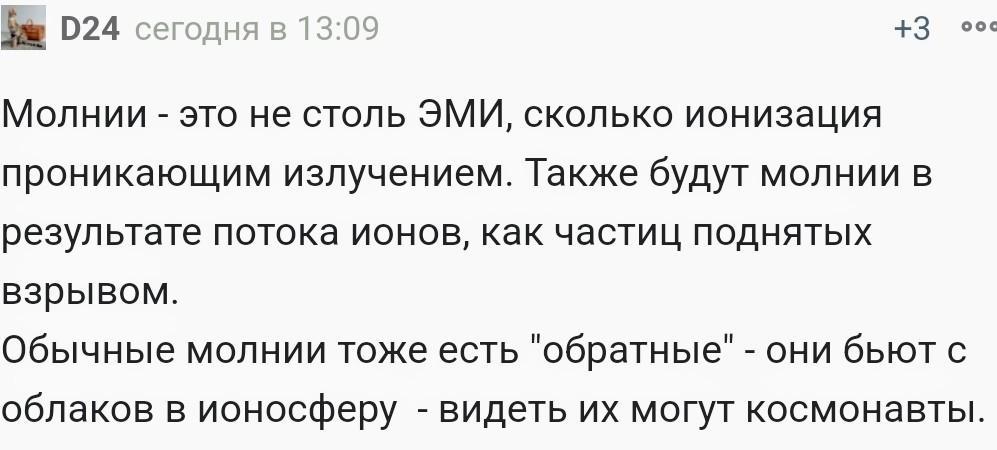 N.B. Что интересно, что похожие по происхождению молнии сопрвождали все ядерные взрывы, произведенные нашим безумным человечеством.