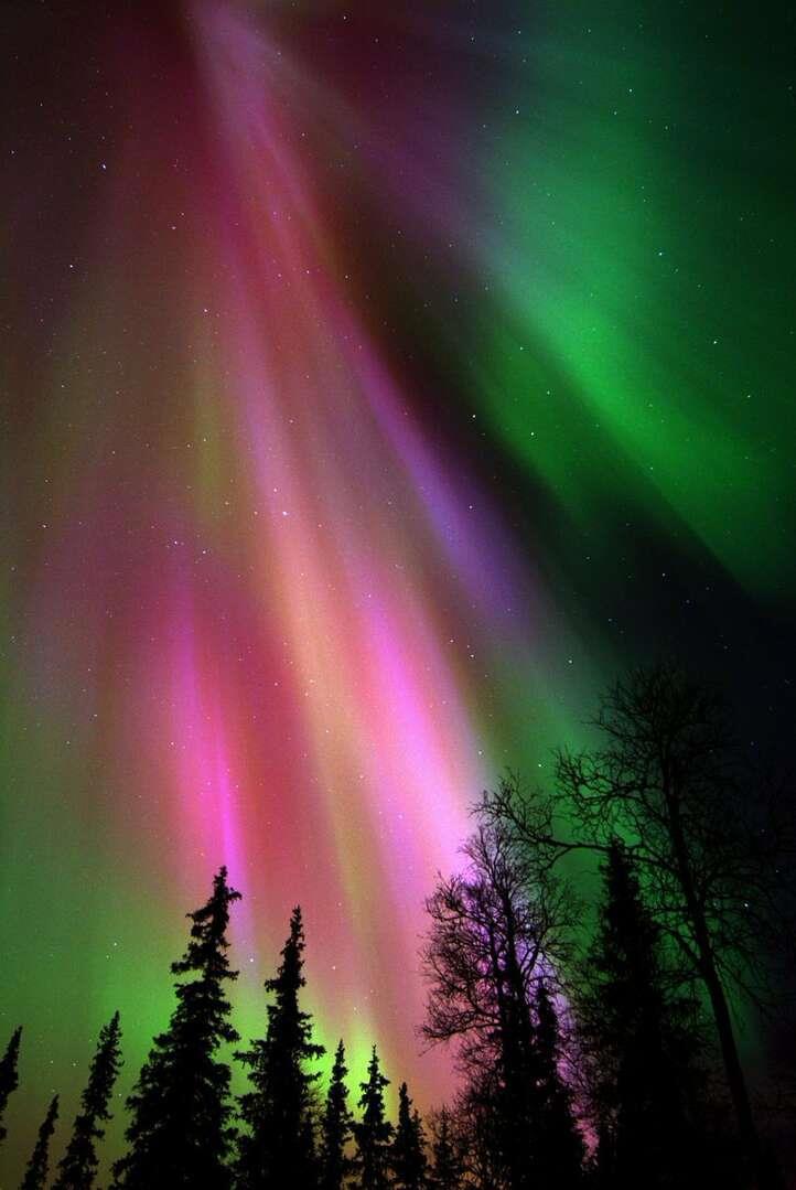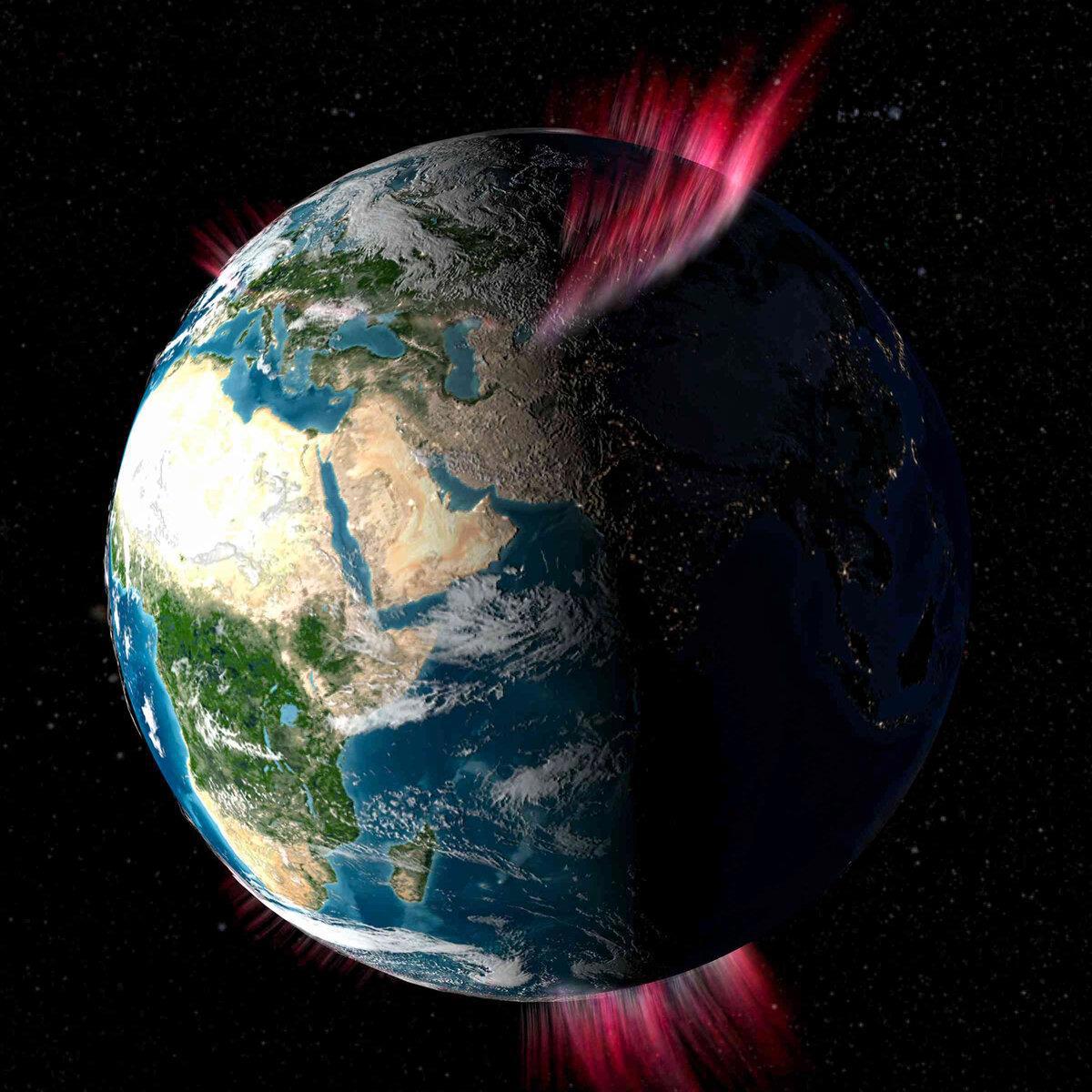 Чрезвычайно редко можно наблюдать феерию цветов красного или красно-розового оттенка. Установлено, что на цвет сияния может влиять высота, где произошло столкновение заряженных частиц: