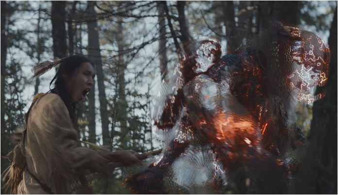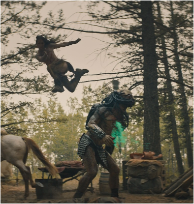 Все возмущаются тем, что боевая пидарасина, кою представляет собой Хищник в этом фильме, шутя порвал волка, медведя, перебил кучу индейцев, профессиональных трапперов, ещё неизвестное количество существ, а потом всосал у какой-то индианки, пусть и ГГни.