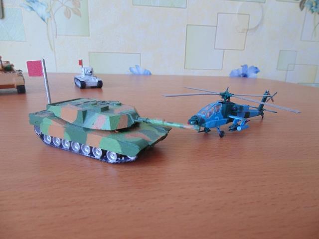 А раньше, по первому делу, "Апач" был изумительно розовым и очень чумово смотрелся на пару с голубым "Абрамсом", паря над ним, на уютной подставке.