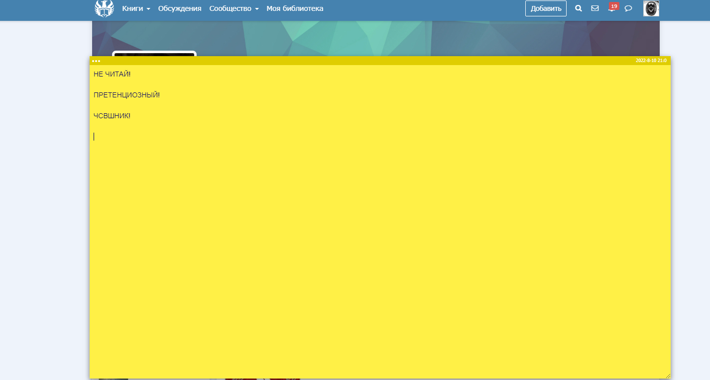 Сайт хорош (особенно если сравнивать с многими другими), но многих вещей на нём не хватает. Например, всё никак не расширят раздел не интересных книг (всё ещё ограничен 1000 книг). А самое печальное, что автора целиком нельзя в этот раздел отправить. // Чёрный лист - это совсем не то.