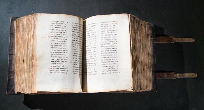 Новгородская кормчая книга — это фолиант высотой примерно 30 см и весом не менее 5 кг. В ней 630 листов.