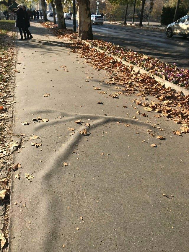 Корни приподняли асфальт