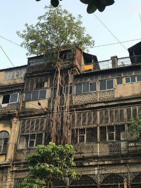 Дерево растет прямо на тротуарной плитке