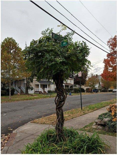 Дерево укутало и почти скрыло дорожный знак