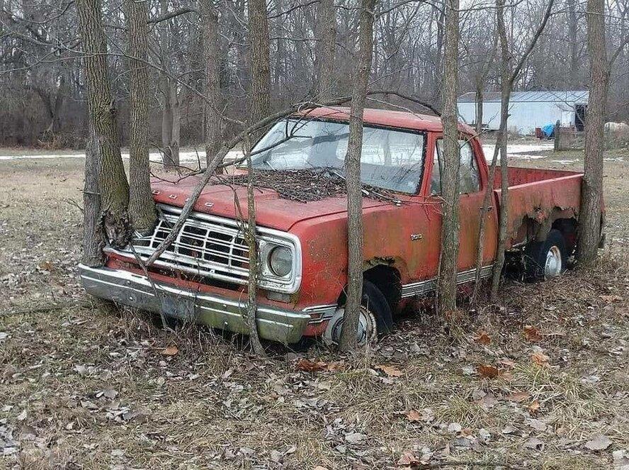 А эдесь уже понадобилась коллективная работа группы деревьев чтобы спрятать это уродливый грузовичок.