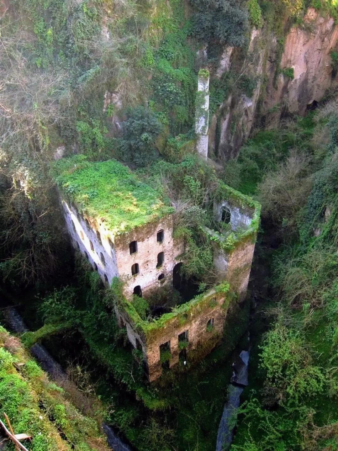 Это место мы видили своими глазами. Это Соренто, Италия. Побережье Амалфи. Это заброшенная мельница. (Ссылка на статью об этом в конце)