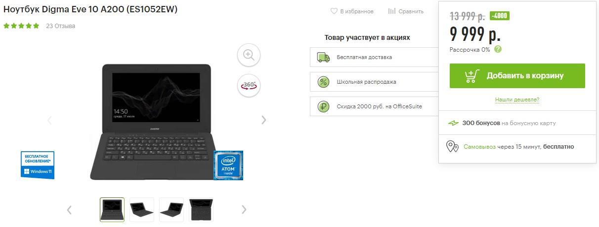 Боже вас упаси от приобретения данного устройства. Вы даже не представляете, какую роковую ошибку вы можете совершить, если будете слушать подобные советы. Казалось бы, что может пойти не так? Ноут то ведь новый, на него и гарантия есть, да ещё и 23 пятизвёздочных отзыва! А то, что господа маркетологи просто играют на вашей наивности и безграмотнсти и продают вам бесполезный кусок пластмассы - 2 гига оперативы, дохлая память emmc, да ещё и виндовз 11 - полный комплект! Если у вас есть лишние 10 тысяч рублей и вам нетерпится поскорее с ними растаться, то лучше уж пожертвуйте их в ближайший детдом.