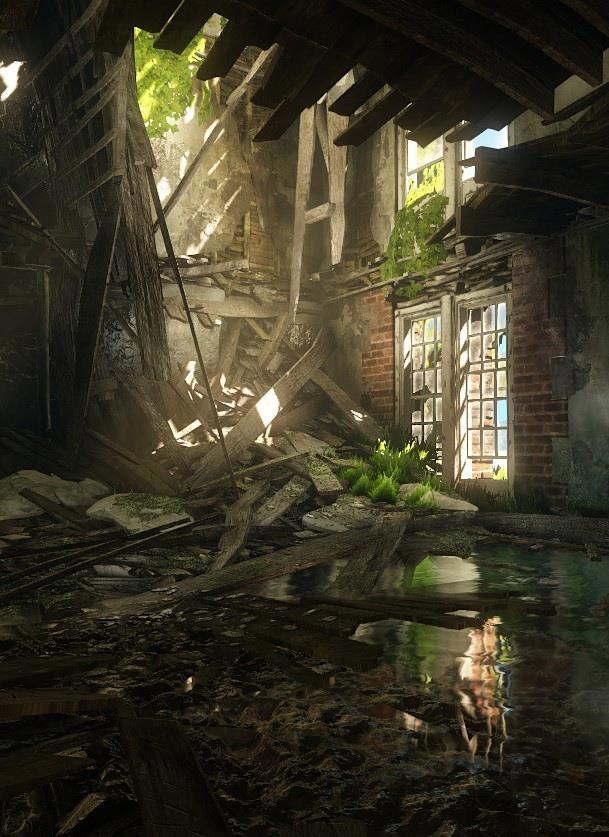 Исследователь идёт вперёд по еле освещённому туннелю. Ржавчина на столько разъела огромную трубу газопровода, что теперь в ней появились маленькие щелки. Внутри кипит своя жизнь. Всё покрыто плавным ковром мха и травинок. Ромашки, посыпленные росой, могут явить салют брызг если наблюдать как они распускаются. Присмотревшись в тень, можно заметить не только цветы. Под слоем грибка лежат человеческие скелеты. Оставленные сражениями не так давно, они теперь служат местными клумбами. Исследователь не волнуется, ведь его кожаный доспех надёжно защищает от опасностей которые есть снаружи. Деревянным щитом и ржавым мечом из обмотков он пробивает себе путь через заросли. В повороте трубы есть проход, который удобно ведёт к лазу в подвал здания. Исследователь ловко перескакивает в другой подземный мир. Мельком в глаза ударила картина руин. В солнечный день покрытые зеленью небоскрёбы стоят в спокойствии. Они больше никому не нужны.