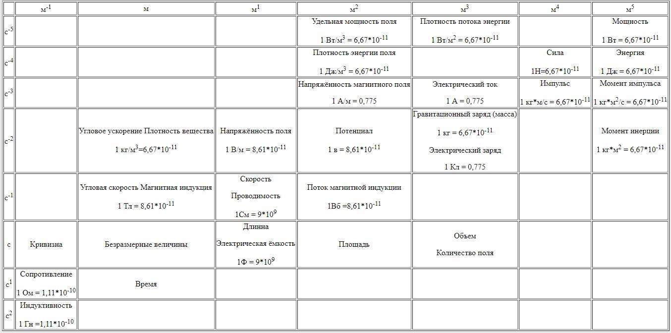Все физические величины располагаются в той части, где время и пространство обратны по знаку или там где одна из этих величин равна нулю. Там где время и пространство имеют однотипный знак, нет ни каких физических величин. Их попросту не существует.