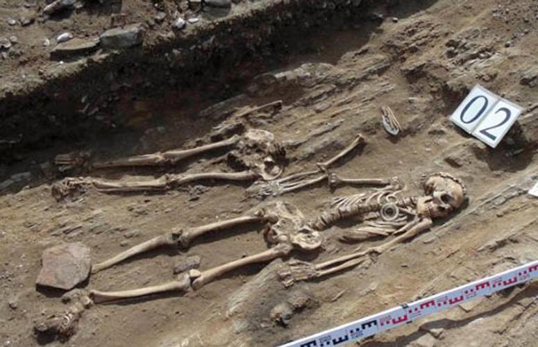 Все захоронения спецы назвали интересными (и я их понимаю), но даже среди них есть одно, которое самое интересное. Причины особого интереса две. Первая причина – чисто эмоциональная. В захоронении найдены останки пожилого мужчины и женщины, которых похоронили рядом, держащихся за руки. Прям «жили они долго и счастливо и умерли в один день»! Так 5 тысячь лет и пролежали. Сказать, что нажили богатство нельзя, но и бедными не были похоже. И вот тут нужны подробности, касательно второй причины. Вот фото раскопок этого трогательного парного захоронения: