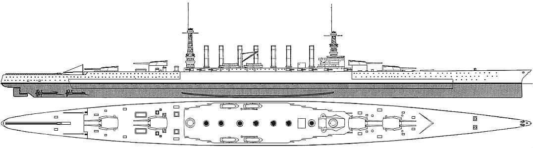 Противоторпедных переборок не было, но корпус в подводной части имел небольшие бортовые були. По одному проекту трубы располагались попарно, по другому - в ряд. Как часто случается при строительстве больших и очень дорогих кораблей, не успели этот проект одобрить, как в Северном море грянул Ютландский бой, убедительно показавший несостоятельность концепции быстроходных, но слабо бронированных линейных крейсеров.